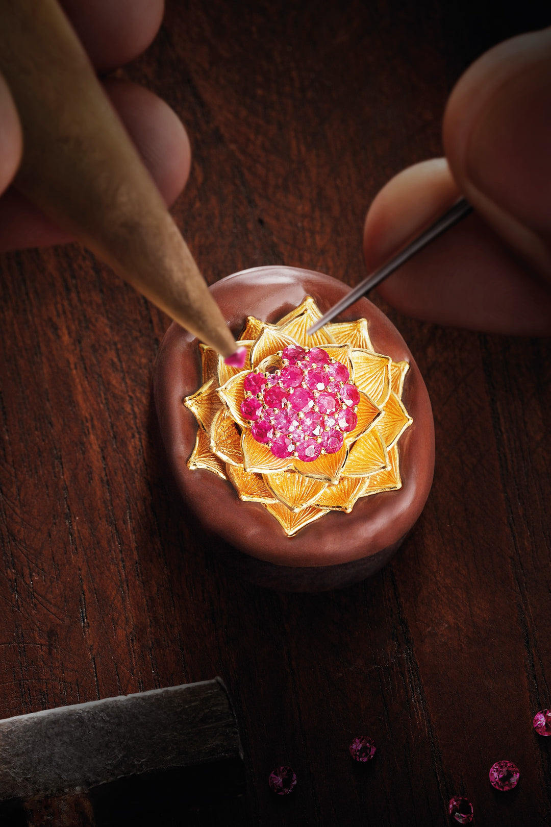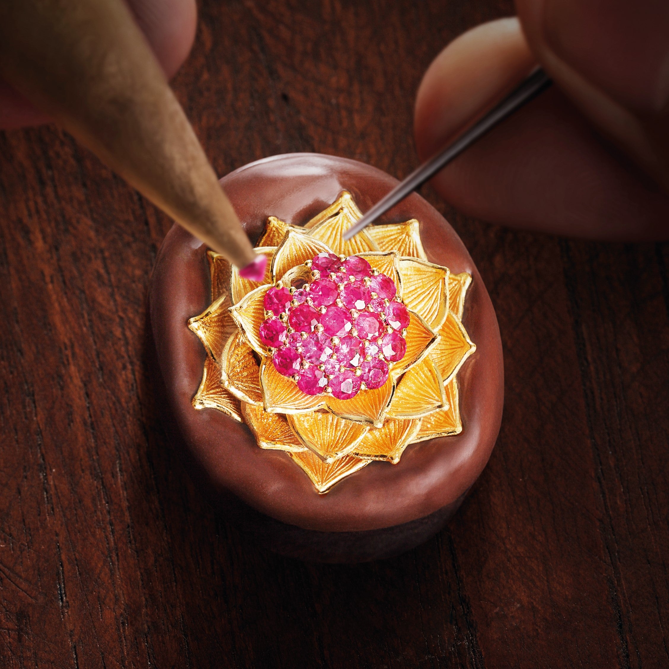 The mythology of the golden lotus is this collection’s major theme. The unique shape of lotus petals conveys the sense of classic, pure beauty that prevails in eyes of nature. Each petal is finely crafted and assembled in radiant form, bringing out the perfect arrangement in dazzling gaze.